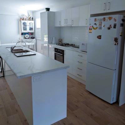 - Gas cooktop, electric oven and instantaneous gas hot water